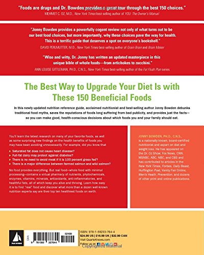 It’s time to debunk all the myths about foods we want to eat. The 150 Healthiest Foods on Earth, Revised Edition delivers facts on foods; no spin, no agenda. In this newly updated nutrition reference guide, acclaimed nutritionist and bestselling author Jonny Bowden debunks traditional food myths, saves the reputations of foods long suffering from bad publicity, and provides just the facts—so you can make good, health-conscious decisions about which foods you and your family should eat. You’ll learn the latest research on many of your favorite foods, as well as some surprising new findings on the health benefits of foods you may have been avoiding unnecessarily. Did you know that, according to the latest research,Saturated fat does not cause heart disease?Full-fat dairy may protect against diabetes?There is no need to avoid meat if it is 100 percent grass fed?There is a major difference between farmed salmon and wild salmon? No food provides everything. But real food—whole food with minimal processing—contains a virtual pharmacy of nutrients, phytochemicals, enzymes, vitamins, minerals, antioxidants, anti-inflammatories, and healthful fats, all of which keep you alive and thriving. Learn how easy it is to find “real” food and discover what more than a dozen well-known nutrition experts say are their “top ten” healthiest foods on earth.