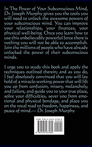 In The Power of Your Subconscious Mind, Dr. Joseph Murphy gives you the tools you will need to unlock the awesome powers of your subconscious mind. You can improve your relationships, your finances, your physical well-being. Once you learn how to use this unbelievably powerful force there is nothing you will not be able to accomplish. Join the millions of people who have already unlocked the power of their subconscious minds.